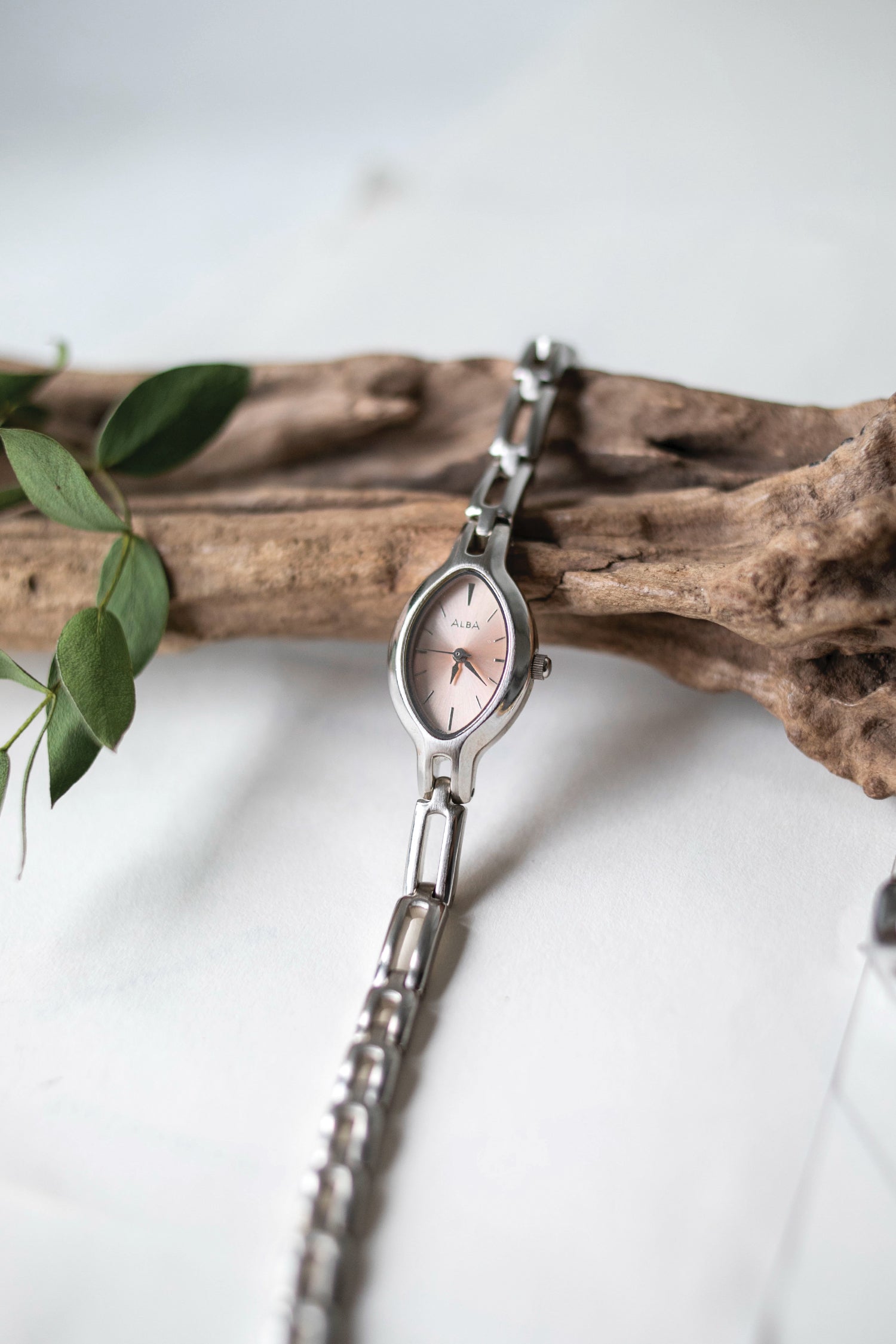 - Reflective, light peachy-pink dial