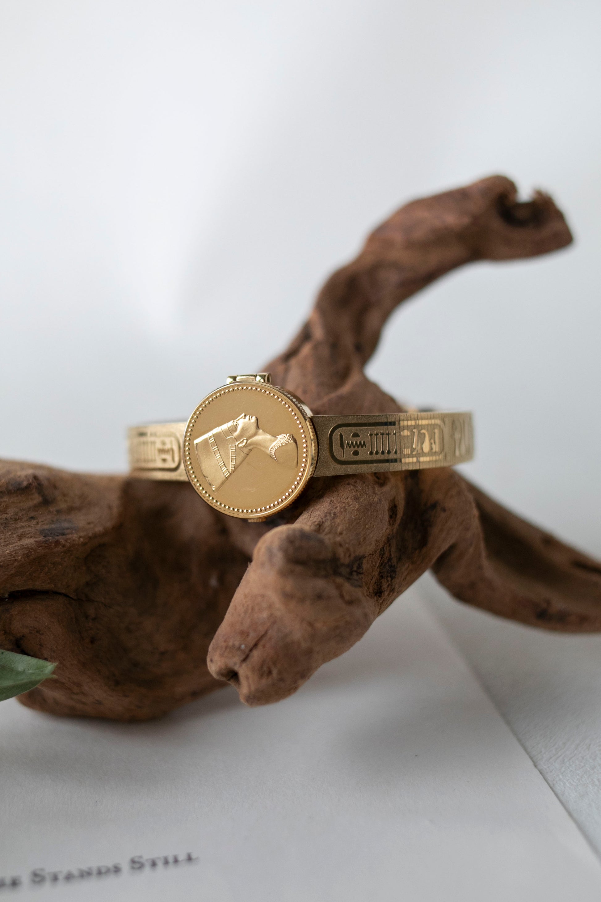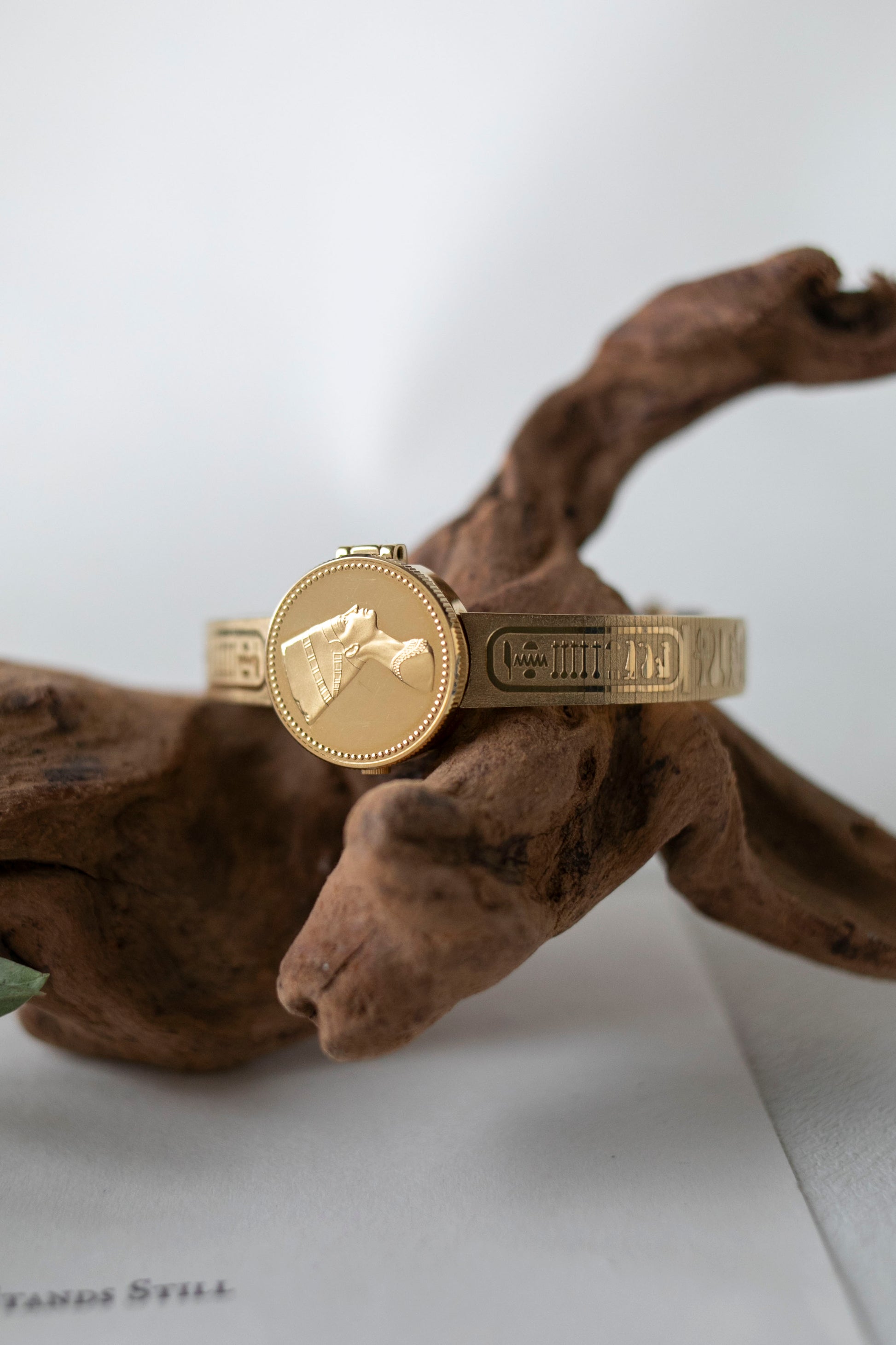 - Features Egyptian bust details