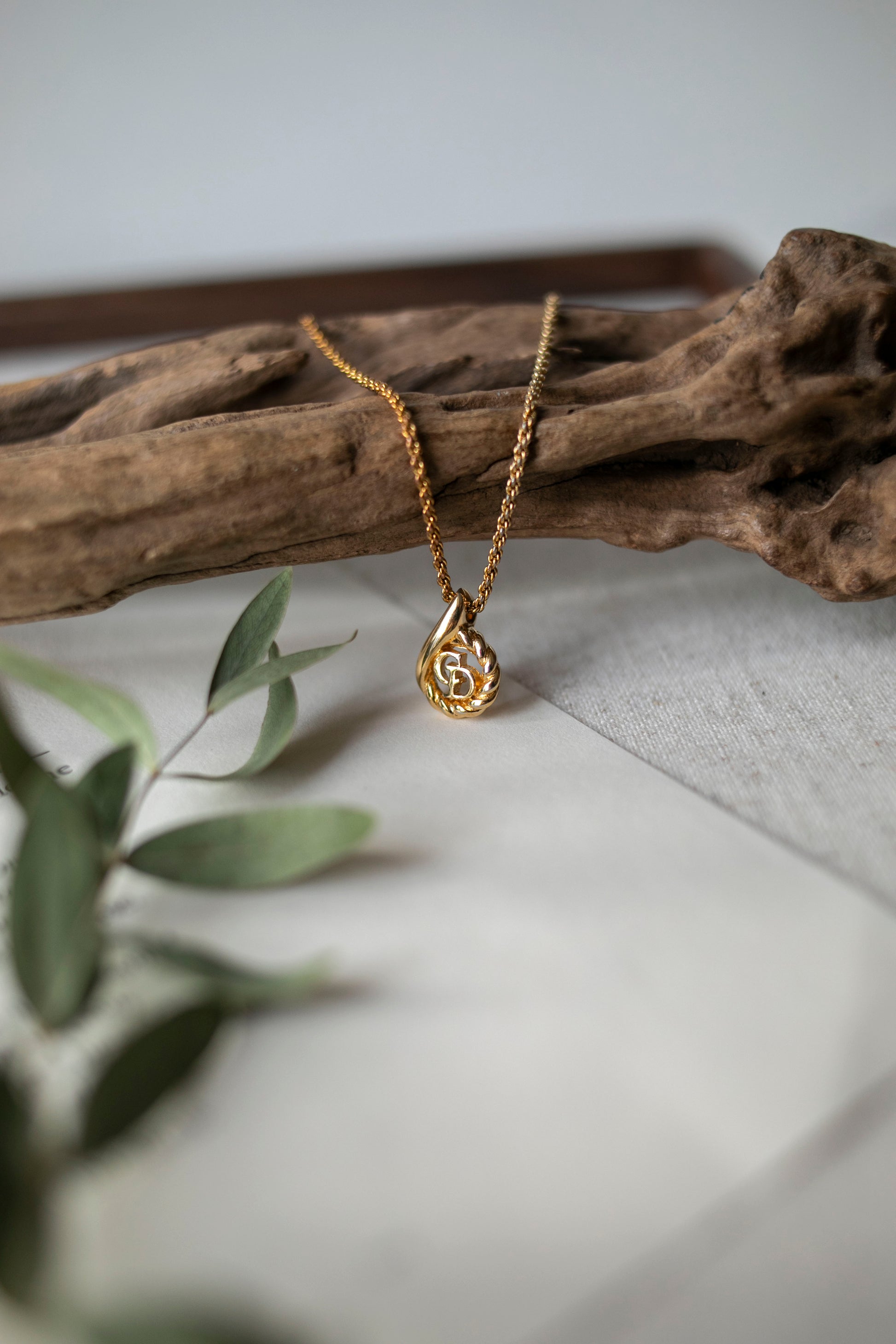 - Teardrop-shaped rope-framed CD monogram pendant
